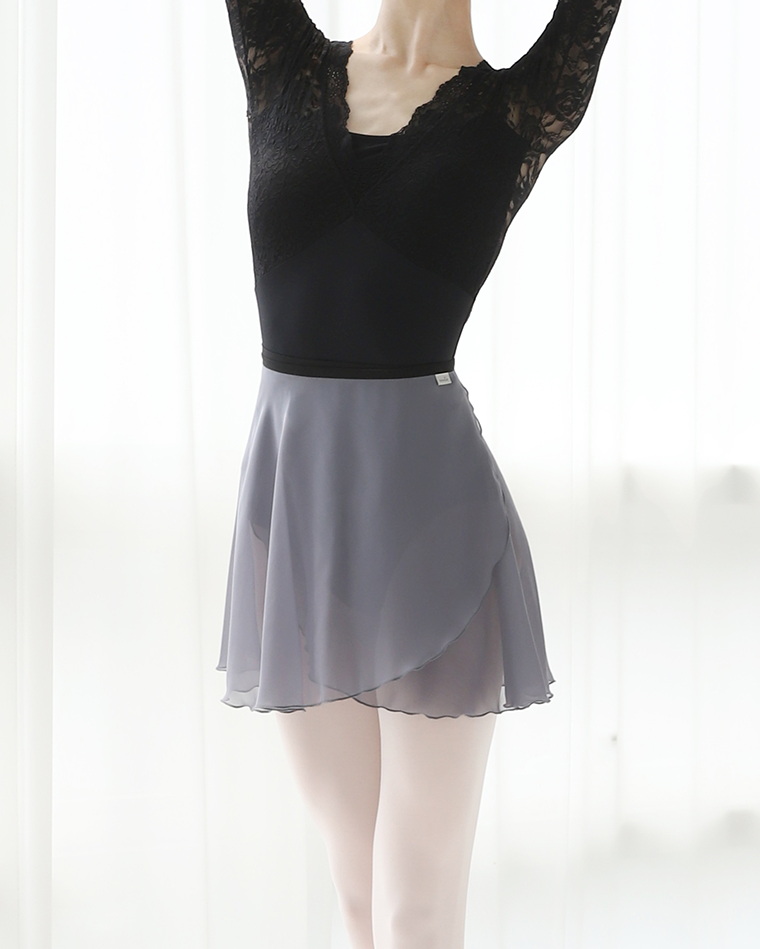 치마 중간 부분부터 활짝 핀 꽃봉오리같이 퍼지는 듯한 라인은 동작을 취할 때