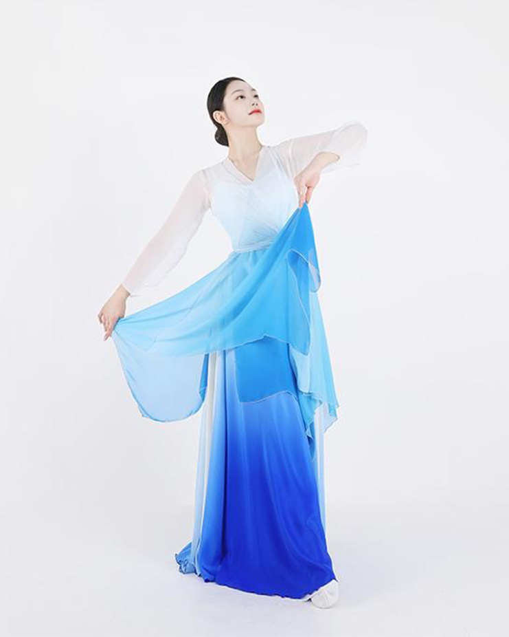 하늘하늘한 쉬폰에 수채화 색상을 물들여  은은한 색감이 아름다운 그라데이션 원단으로 제작되었