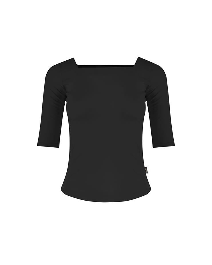체형을 커버하기 위해 디자인된 스퀘어 넥 티셔츠입니다.