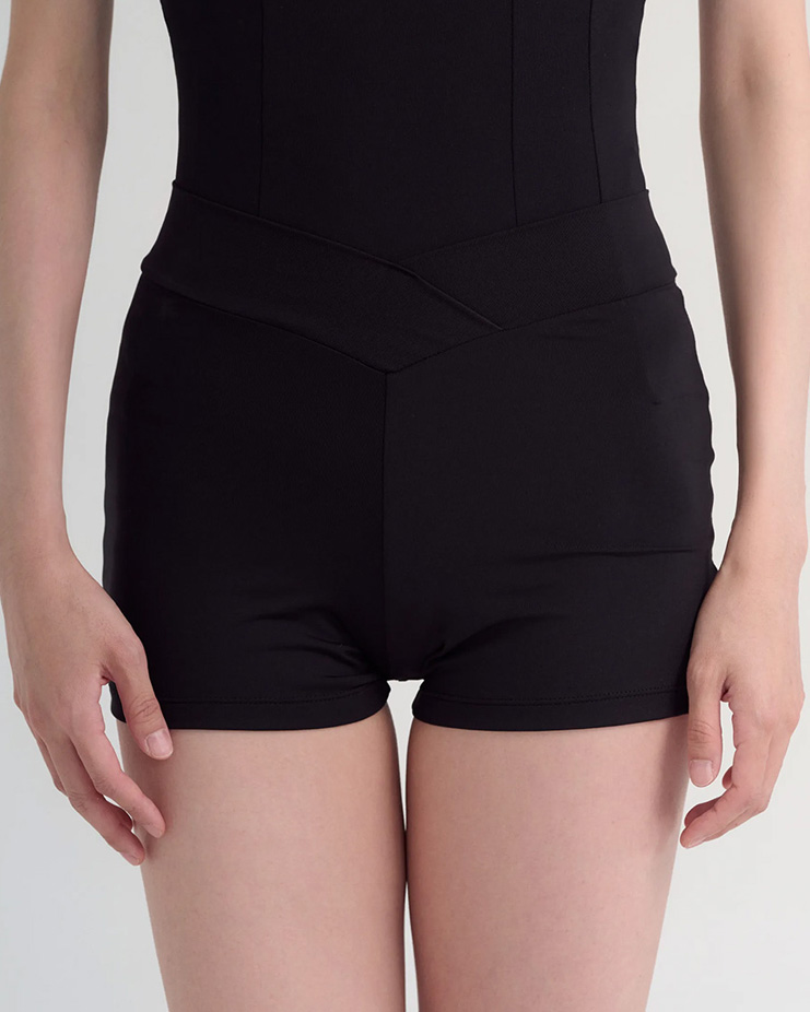 심플하지만 허리 안쪽으로 들어간 V형 교차 컷팅 포인트로 허리가 더욱 가늘어 보이는 효과가 있