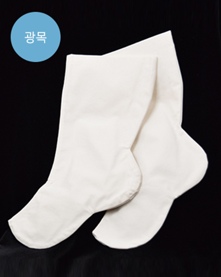 일반 면스판에 비해 미색을 띄고 뻣뻣한 재질의 광목 버선입니다.