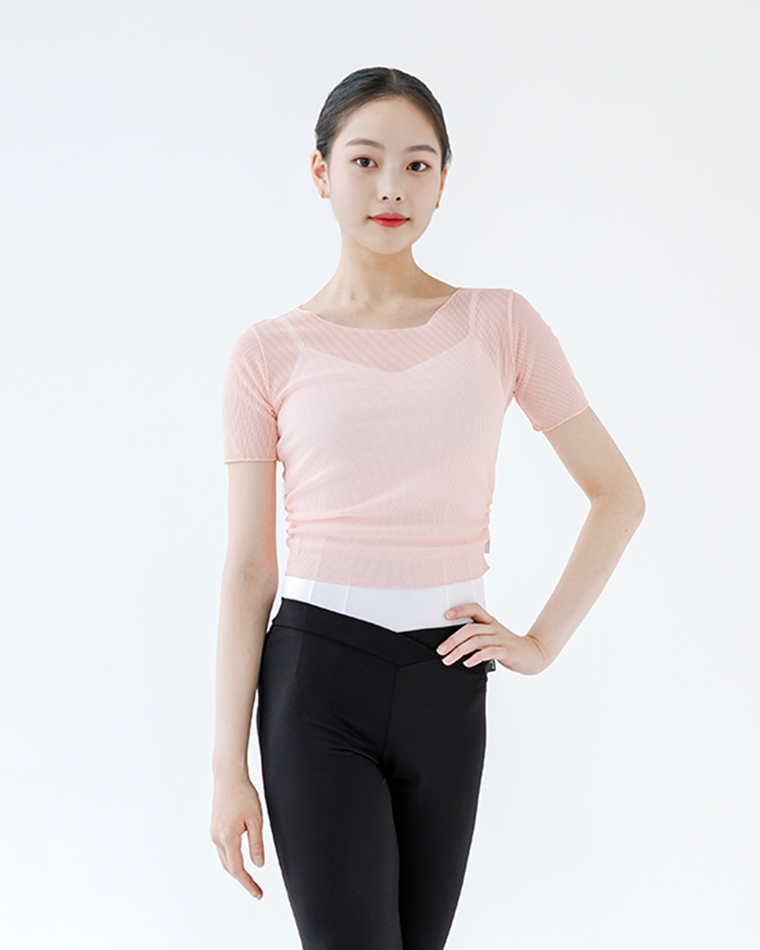 * 라인 메쉬탑 [살몬핑크] Line Mesh Top [Salmon pink]